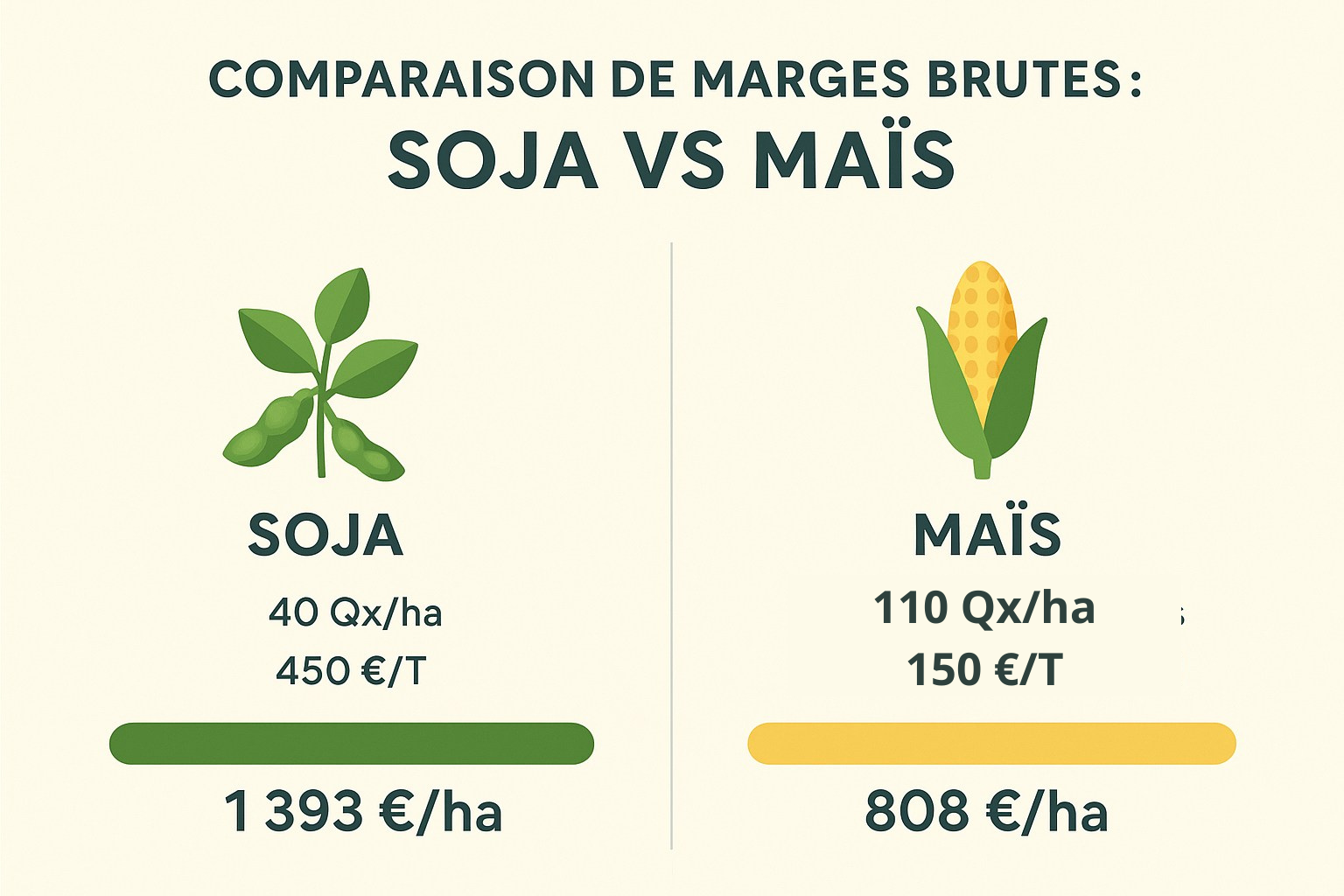 Les résultats sont clairs : 👉 Le soja affiche systématiquement de meilleures marges que le maïs, même dans des conditions moins favorables 🌾 Voici ce qu’il faut retenir 👇 💰 Une marge brute qui fait la différence Avec un rendement autour de 40 Qx/ha et un prix de 450 €/T, le soja dégage une marge brute pouvant atteindre 1 393 €/ha. ➡️ À côté, le maïs — même en conditions optimales — plafonne autour de 808 €/ha. 📉 Une rentabilité solide, même en cas de baisse de rendement Moins d’eau ? Pas d’irrigation ? 👉 Le soja reste rentable, là où la marge du maïs chute rapidement. 📊 Un avantage économique constant Quel que soit le scénario, le soja confirme son statut de culture à haute rentabilité. ✔️ Moins de charges ✔️ Plus de marge ✔️ Plus de résilience 🔥 En résumé : Le soja, c’est une stratégie gagnante, durable et adaptée aux réalités économiques actuelles. 👉 Et toi, tu t’attendais à un tel écart entre soja et maïs ? 🌱 #Agriculture #Rentabilité #Soja #Maïs #MargeBrute #Agroécologie #CultureDurable #ConseilAgri #RevenuAgricole #AgriInnovation #RésilienceClimatique #RotationDesCultures